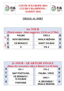 U talijanskom gradu Alassio u petak, 17. travnja 2026. godine održan je ždrijeb za seniorski volo Kup Europe za klubove (C1).